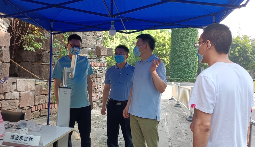 学校安全重于泰山,为提高学校预防和控制新冠肺炎疫情工作的能力及水平,进一步规范应急处置工作,做好假期及秋季开学期间的疫情防控工作,保障全体师生员工的身体健康及生命安全,维护学校正常教育教学秩序和校园稳定,8月2日上午,学校副校长段胜峰带领防控办、保卫处、基建后勤处、人事处、学生处、研究生处、国际交流与合作处、物业公司等相关部门负责人,对学校疫情防控工作开展安全检查。