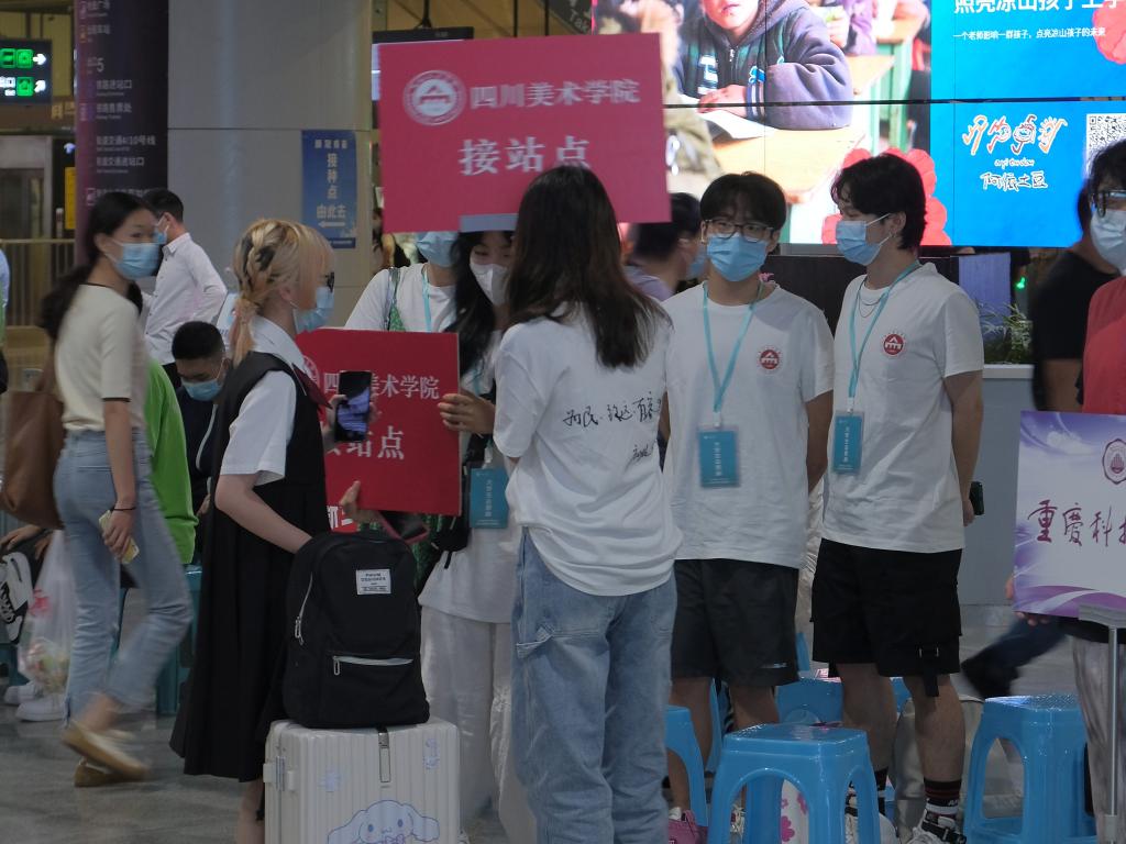 学生处、校团委在重庆西站、重庆北站设立了迎新接站点,专车接送新生到校报到,让远离家乡求学的川美学子们一出站就能感受到学校的关爱和温暖。