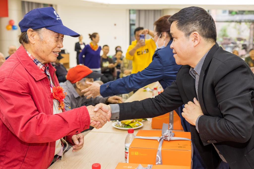 “九九”重阳,寓意长长久久。主席台的校领导为年满70、80、90岁的老寿星们佩戴红花,献上生日蛋糕和礼物,全场齐唱生日歌,祝愿老寿星们生日快乐,健康长寿,会场气氛温馨热烈。