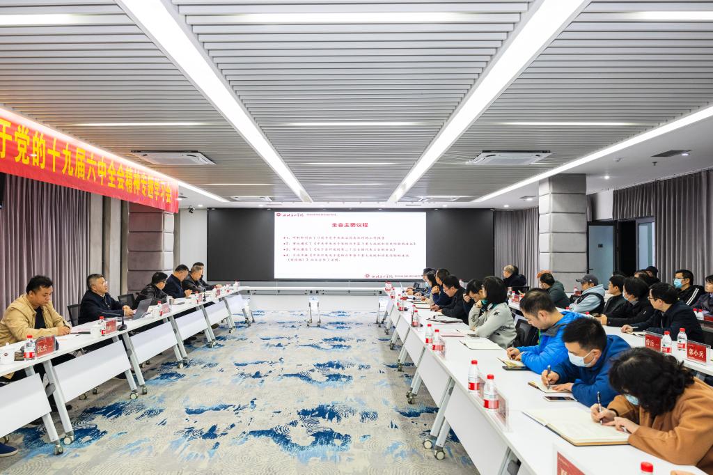 为第一时间学习贯彻党的十九届六中全会精神,11月12日下午2点,学校在五会议室召开党委中心组(扩大)关于党的十九届六中全会精神专题学习会。党委书记唐青阳主持会议。全体校领导、各单位党政主要负责人参加会议。市委教育工委列席旁听工作组列席了会议。