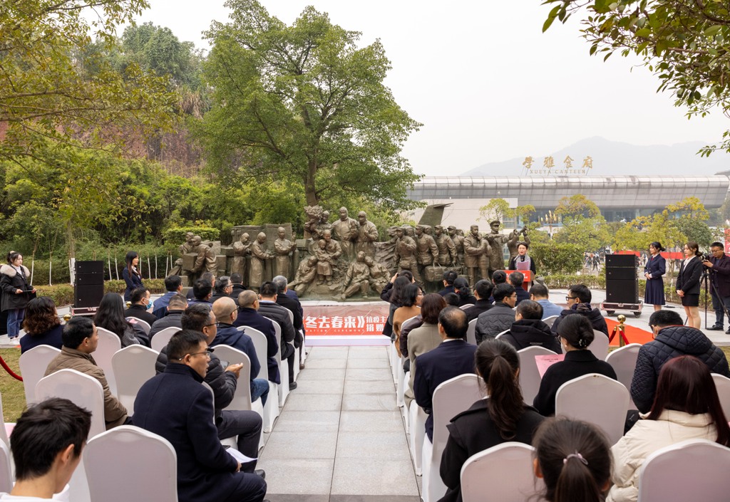 12月9日上午,由我校创作的《冬去春来》抗疫主题群雕捐赠仪式在重庆医科大学缙云校区举行。市委教育工委书记、市教委主任黄政出席并见证捐赠仪式。我校党委书记唐青阳、重庆医科大学党委书记刘宴兵出席仪式并致辞。我校庞茂琨校长为重庆医科大学颁发《冬去春来》群雕授权使用书,重庆医科大学校长黄爱龙为四川美术学院颁发捐赠证书。副校长焦兴涛在现场阐释了群雕特点、创作历程等。