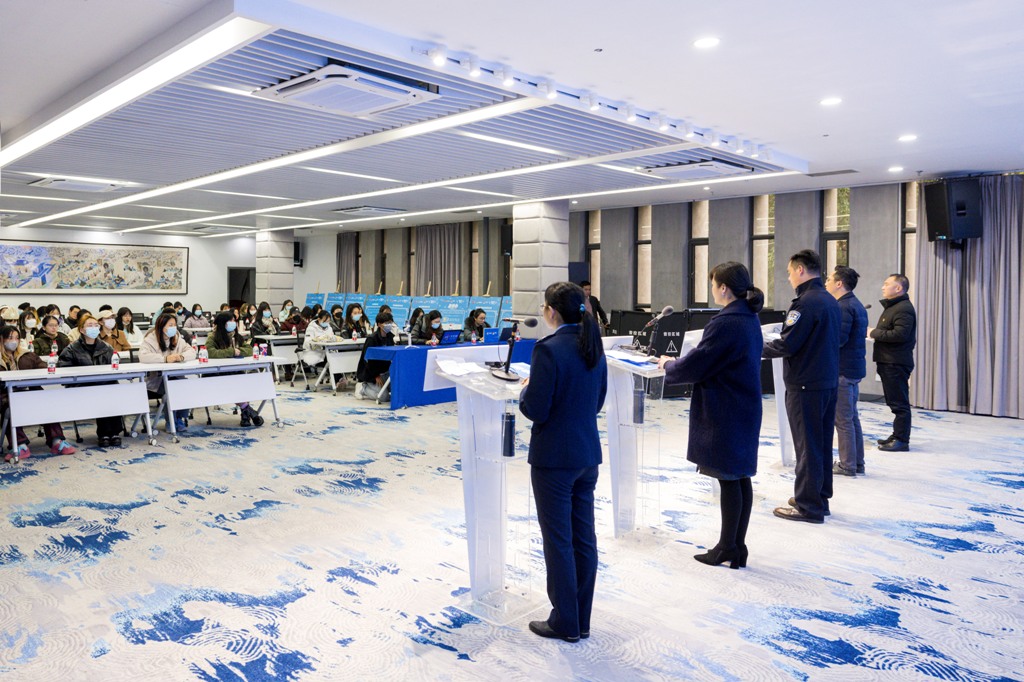 活动现场,市人力社保局就业促进和失业保险处徐鹏、市公安局刑侦总队六支队蒋兴盛、市市场监管局注册许可局姚瑶、市税务局政策法规处陈孜佳等四位发言人,用讲政策、举案例、列数据等生动丰富的形式,分别为我校学生做了主题为“高校毕业生就业创业的相关政策和问题”“如何防范电信诈骗,守护大家的‘钱袋子’”“如何便利开办企业”“大学生创业就业税收优惠政策”的宣讲和解读。