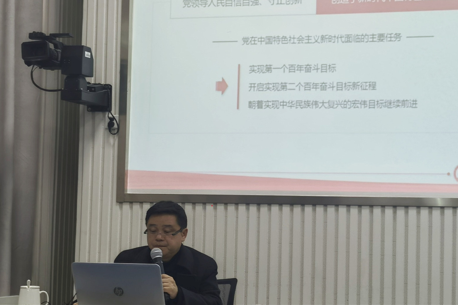 为全面深入学习贯彻党的十九届六中全会精神,1月14日上午,学校学习贯彻党的十九届六中全会精神宣讲队成员,党委副书记、校长庞茂琨在虎溪校区绘画楼208教室,为造型艺术学院师生专题宣讲党的十九届六中全会精神。造型艺术学院全体总支委员、支部书记、部分师生党员参加了此次宣讲会。会议由造型艺术学院党总支书记王天祥主持。
