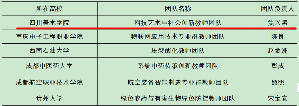 日前,教育部印发通知,公布第二批全国高校黄大年式教师团队名单。重庆市有5个高校团队入选。其中,我校副校长焦兴涛教授领衔的“科技艺术与社会创新”团队成功入选第二批“全国高校黄大年式教师团队”。