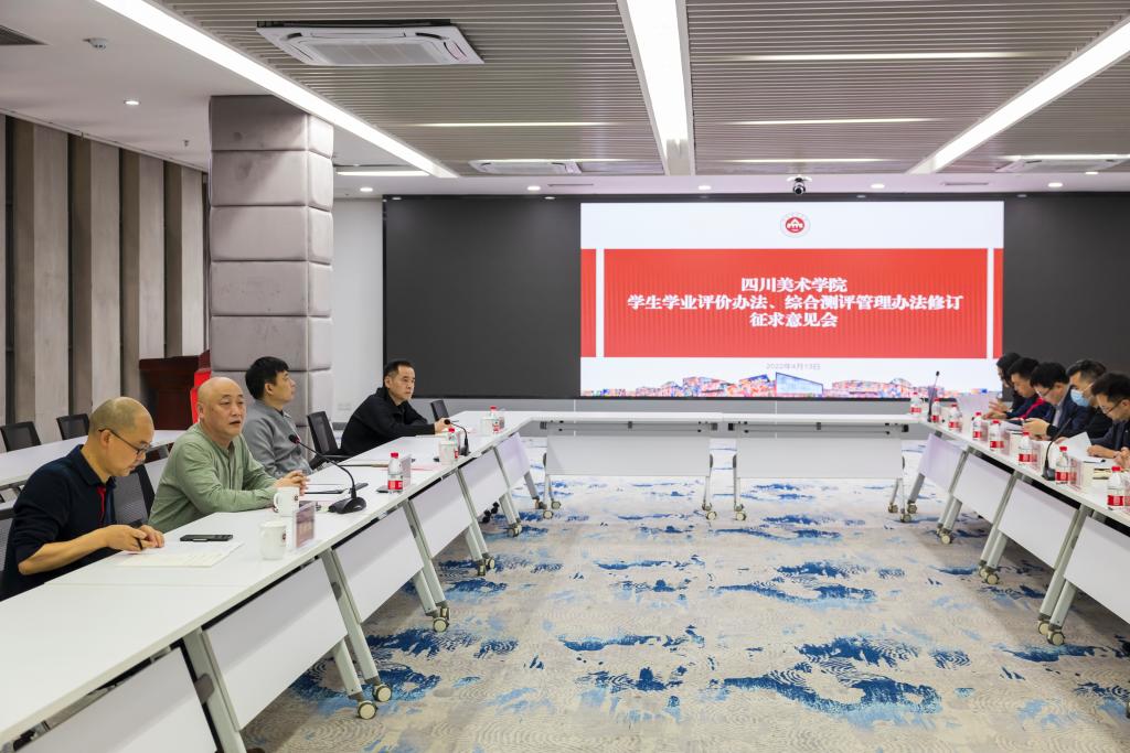 张杰首先就本科生学业评价办法、综合测评管理办法修订的背景、重要意义和修订情况作了说明。教务处副处长赵春华从学业评价体系、评价指标、考评制度、标准执行、评价结果运用五个方面,对《四川美术学院本科生学业评价管理办法》进行了介绍。学生处处长杜泰山从现办法存在的主要问题、修订的评价体系和指标、相关部门统筹情况三个方面,对《四川美术学院本科学生综合测评管理办法》作了讲解。