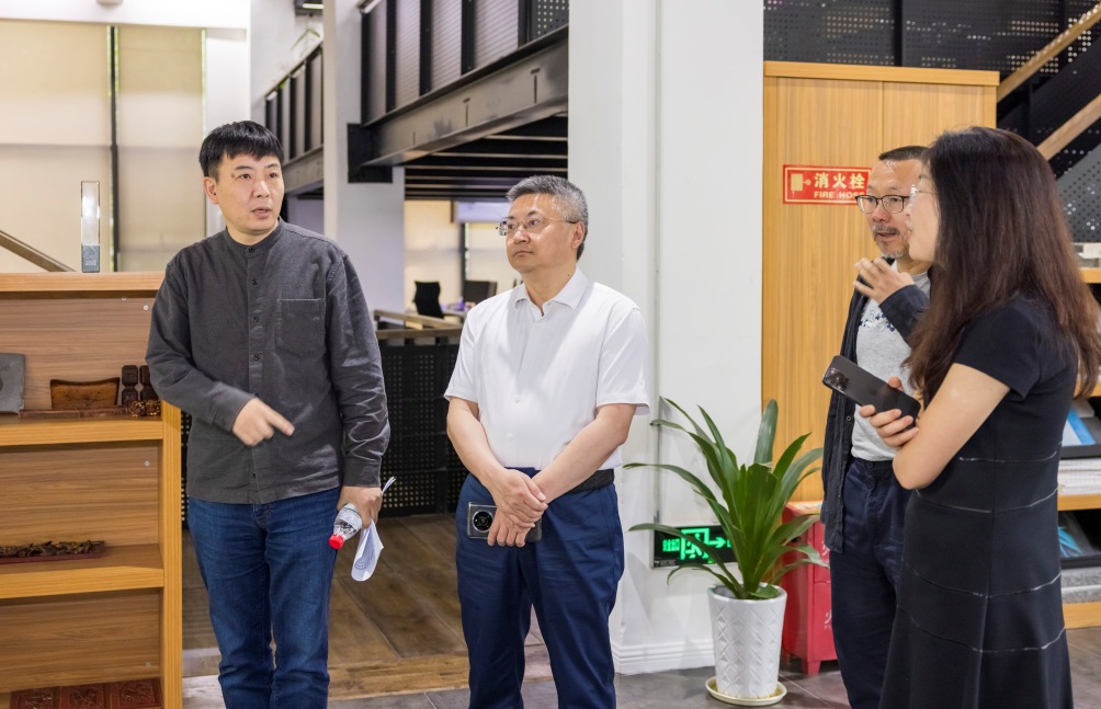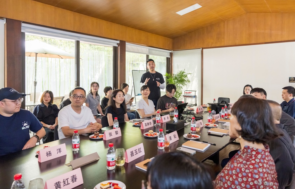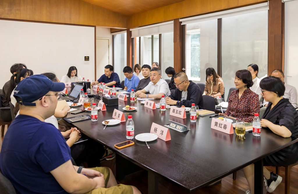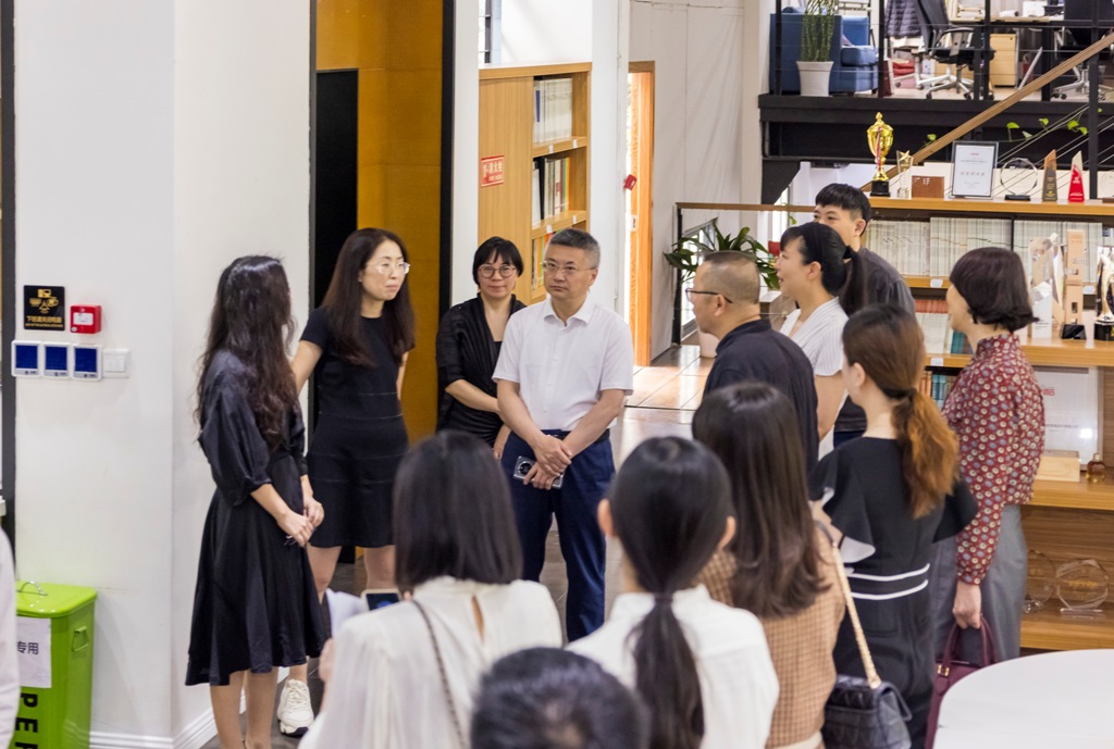 唐青阳一行首先参观了“纬图设计”办公大楼。之后召开座谈会。会上,“纬图设计”总裁高静华对唐青阳书记一行到访表示热烈欢迎,详细介绍了公司发展历程。她表示,“纬图设计”于2005年在重庆成立,2011年设立上海分部,2021年设立武汉分部,员工达到200余人。公司成立近二十年以来,一直与川美保持良好合作,相互影响、相互成长,取得了丰硕的合作成果,也为长期友好合作奠定了坚实基础。她指出,“纬图设计”2011年就签约为四川美术学院本科学生实习实践基地,长期接纳我校环艺、风景园林等专业本科学生实习教学。现有员工中,川美校友共有35人,在设计人员中占比达到40%,部分校友已成长为公司核心骨干。
