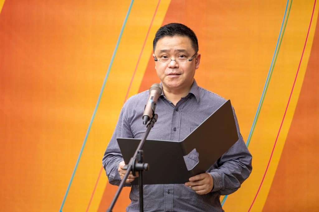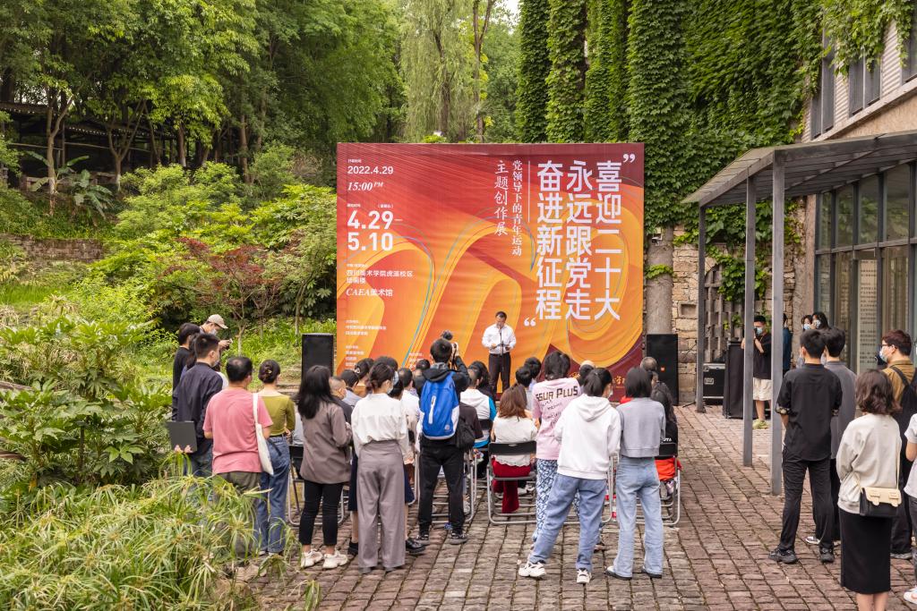 黄永宜发表讲话。预祝本次展览圆满成功,并号召四川美术学院青年始终高举团旗跟党走,以实际行动践行党旗所指就是团旗所向的铮铮誓言,在党的二十大即将召开之时以优秀文艺作品讲好党的故事,讲好青春的故事,用青春的画笔谱写将川美建设成为国内一流、国际知名美术学院的美好篇章。