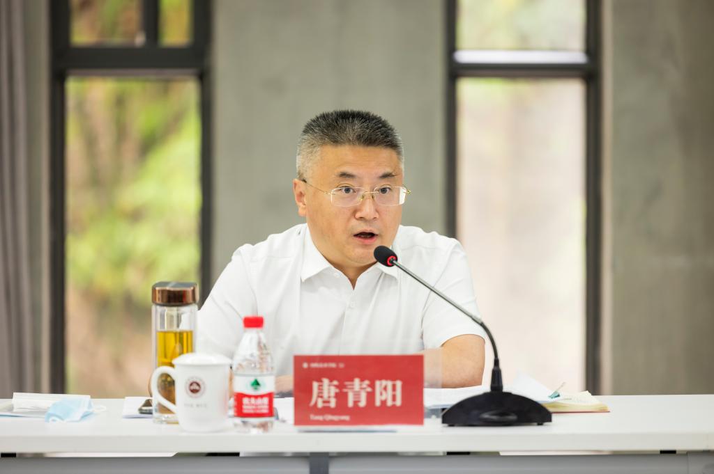 唐青阳在讲话中指出,毛泽东同志《在延安文艺座谈会上的讲话》,总结了中国革命文艺运动的基本经验,明确了文艺为人民大众服务的方向,阐明了马克思主义的文艺理论和党的文艺路线,解决了中国革命文艺运动中长期争论的一系列根本性的问题,为创造民族的科学的大众的新民主主义文化作出重大贡献,至今仍闪耀着真理的光辉,对中国特色社会主义文艺工作与文艺发展极具现实针对性和现实指导意义。党的十八大以来,习近平总书记对文艺工作发表的一系列重要讲话、作出的一系列重要指示批示,集中、系统地反映了总书记的文艺思想和观点,是习近平新时代中国特色社会主义思想的重要组成部分,与《讲话》一脉相承、与时俱进。唐青阳强调,川美的历史就是一部与历史同行、与时代同步、与人民同心的艺术发展史、艺术进步史,新时代川美对标对表《讲话》精神和习近平总书记关于文艺工作的重要论述,仍有很多工作要做,还有很长的路要走。一是要坚持深学笃用,读原著、学原文、悟原理,把重温毛泽东同志《在延安文艺座谈会上的讲话》与学习贯彻习近平总书记关于文艺工作的重要论述有机结合、融会贯通。学校各二级党组织中心组、基层党支部、教职工政治理论学习会要把两者列为学习研讨的重要内容;学校各有关院系和部门要组织力量开展专题理论研究和相关课程建设,加大马克思主义文艺理论的研究力度。二是要坚持文化自信,充分认识文艺工作所担负的历史使命和历史责任,切实增强做好文艺工作的使命感和责任感。三是要坚持人民立场,牢固树立以人民为中心的文艺观,始终坚持为人民而创作。四是坚持守正创新,不断创作传承历史、适应时代、启迪未来的精品力作。五是坚持立德修身,努力做德艺双馨的人民艺术家。六是坚持政治引领,全面加强和改进党对文艺工作的领导。