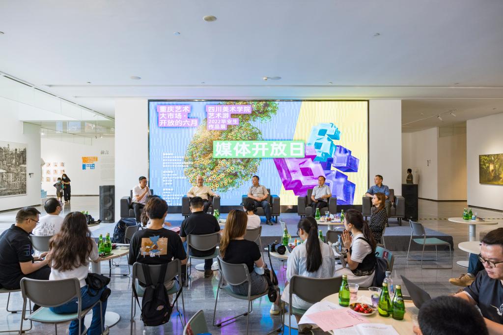 6月1日下午,由四川美术学院、重庆文化产业投资集团、重庆日报、上游新闻共同主办的“重庆艺术大市场·开放的六月——四川美术学院艺术游”2022毕业生作品展,在四川美术学院美术馆、重庆当代美术馆和上游新闻客户端同时开幕。展览于6月1日下午2点在四川美术学院大学城校区美术馆举行了媒体开放日活动。党委副书记左益,党委常委、副校长张杰,重庆文投集团党委委员、副总经理程锋,教务处、研究生处、美术馆等部门负责人,各二级学院相关负责人及推介毕业生代表,新华社、光明网、新华网、环球网、人民网-重庆发布、中央广播电视总台重庆总站、重庆日报、华龙网、重庆卫视、上游新闻、重庆新女报等媒体记者出席。学校党委常委、宣传部部长贾安东主持活动。