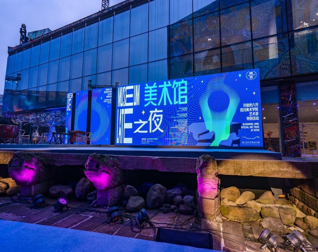 6月9日晚20:00,“美术馆之夜——开放的六月-四川美术学院艺术游特别活动”在四川美术学院美术馆开幕。泸州老窖-国窖1573携手我校,与音乐共和创艺聚场、寅子剧场一起,带来跨界试听表演晚会,推出灯光秀、服装秀、国潮音乐剧、沉浸式戏剧四大版块节目。