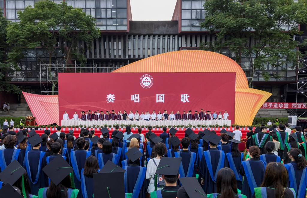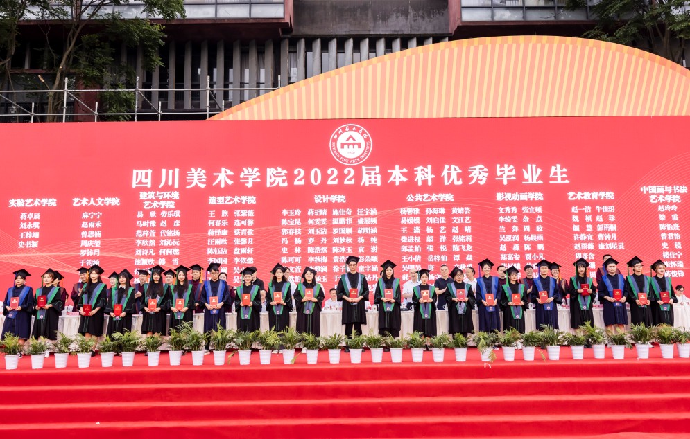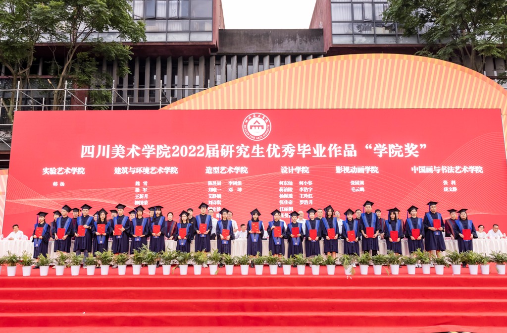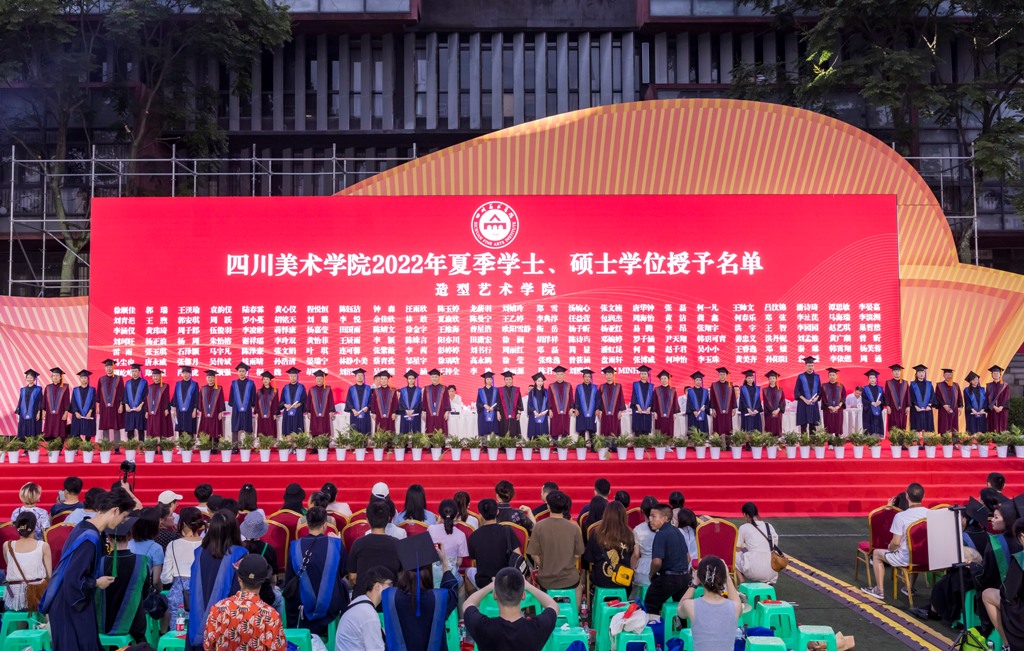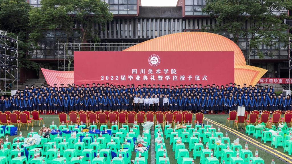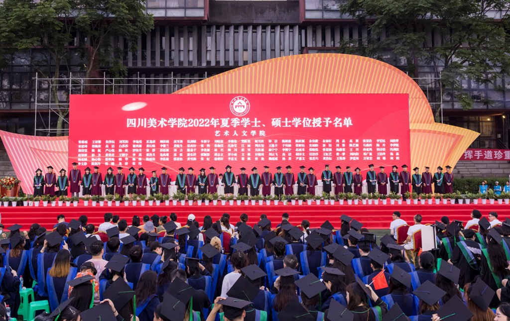2022年6月25日晚,四川美术学院2022届毕业典礼暨学位授予仪式在虎溪校区隆重举行。学校党委书记唐青阳,党委副书记、校长庞茂琨,党委副书记左益,副校长张杰,纪委书记黄云,副校长焦兴涛,副校长段胜峰,副校长张勇华出席典礼。唐青阳主持典礼暨学位授予仪式。学校学位评定委员会委员、全体中层领导干部、2022届全体毕业生、教师代表、毕业生家长代表和在校生代表参加了典礼暨仪式。