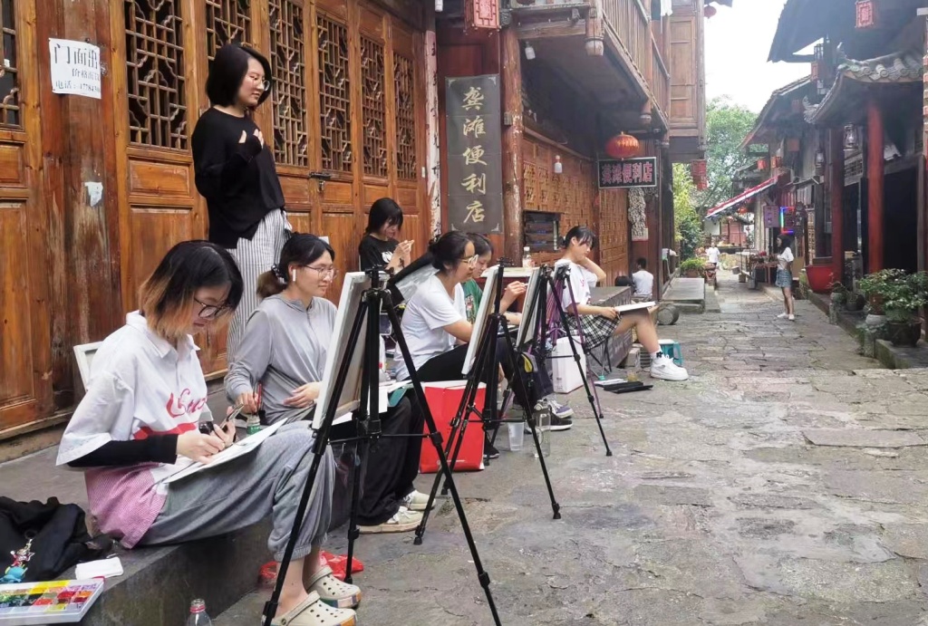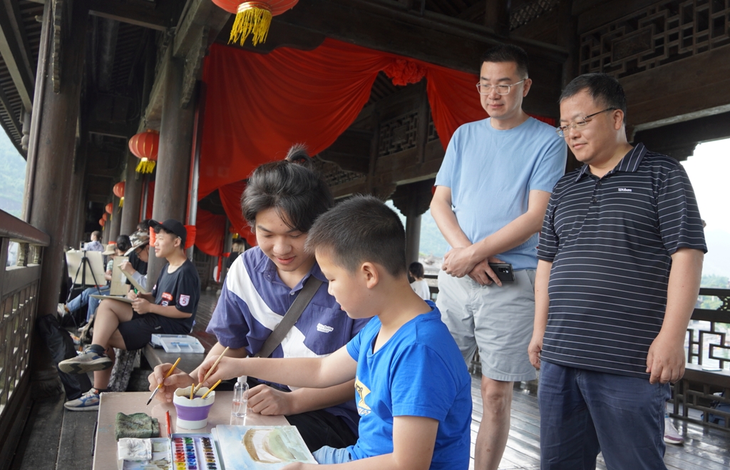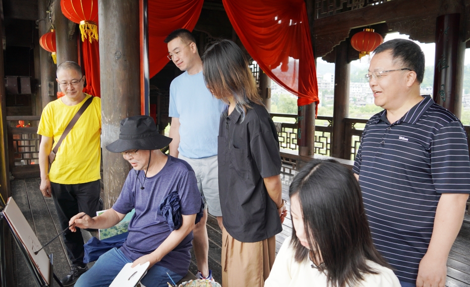 左益指出,此行代表学校领导看望在炎炎夏日依然坚守岗位的师生,感谢老师们的辛勤付出和同学们的热情参与,对外出实践教学的细致安排、师生积极向上的精神面貌给予了充分肯定。他对老师提出殷切期望,希望在专业上不断精进,加强不同专业老师之间的沟通,在跨专业交流中碰撞出创新点,提升教学成效。同时也要把握机会,把外出实践教学与体察社情民情结合起来,深入社会、深入生活、深入群众,从单纯的写生和模仿走向社会和实践,老师在开展创作教学的同时,也要引导和教育学生关注新时代中国乡村的历史性变革,调研学习当地的历史人文,让同学们处于广阔社会之中,关注鲜活社会现实,关心乡村振兴发展,扎根于新时代、新社会、新思想之中,在生活世界与艺术实践的相互浸润之中站稳人民立场。左益对外出实践教学的管理工作提出了要求,希望教务处作为牵头部门进一步发挥组织服务方面的作用,在外出实践教学比较集中的地区专门对接地方,主动谋求与政府、企事业的合作,建立稳定的服务与支持关系,为外出的师生畅通信息、传达需要、解决问题,形成流畅的实践教学服务保障机制。