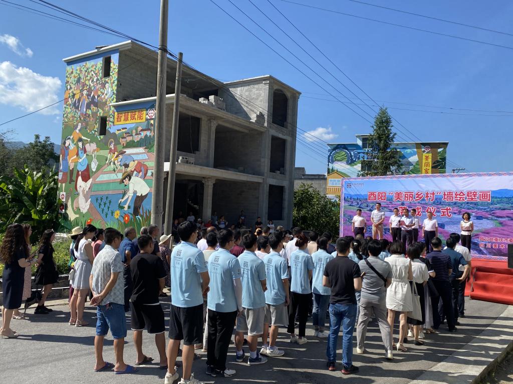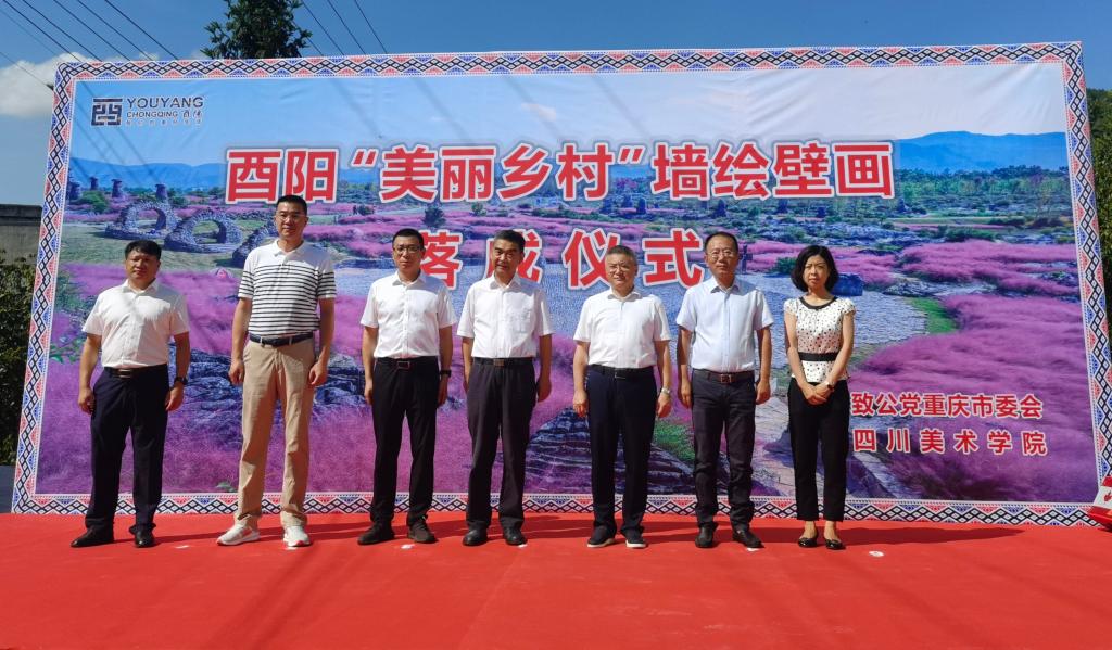 8月9日,学校党委书记唐青阳率队,党政办公室、公共艺术学院负责人,以及公共艺术学院博士教师、办公室工作人员一起,赴酉阳县板溪镇杉树湾村参加“美丽乡村”墙绘壁画落成仪式。