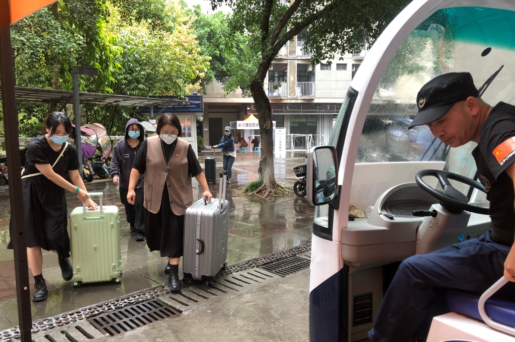 9月1日一早,在四川美术学院2022级新生报到现场,各校门入口、各寝室楼栋、学生食堂,我们都可以看到一个个身穿红色或蓝色马甲、蓝色雨衣、胸前佩戴着党徽的忙碌身影,他们笑脸盈盈地接过新同学们沉重的行李,一遍又一遍地说着“欢迎欢迎!”“行李给我吧,我来拿!”“请往这边走”“同学们戴好口罩”......他们热情地引导同学们到报到点填写资料、到学校设立的核酸检测点进行核酸入校即检、帮助同学们转运行李到学生寝室安顿下来、奔走校园帮同学们采购生活物资、代取快递......他们,就是四川美术学院的教职工志愿者!