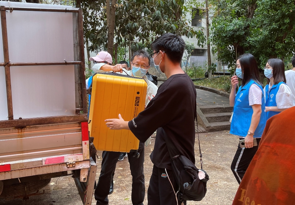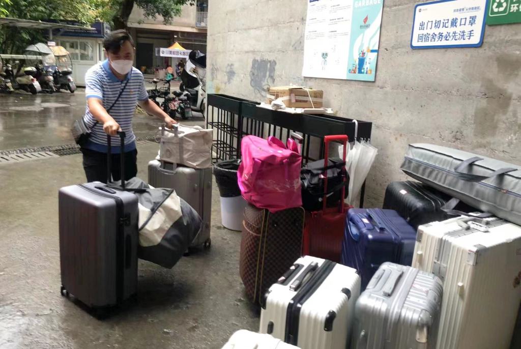影视动画学院教职工志愿者大清早到达学生寝室3号楼,分组为新生耐心答疑、加服务群、搬运行李,接龙收集快递信息和新生个性化需求,无论男女教师,都一趟趟地帮学生搬运大宗行李上楼,并驾驶自己的私家车和私人电动车,帮助新同学们找快递、取快递、分类包裹行李、协调本科升研的学生打包搬家;还贴心为新同学们准备了酒精湿巾和口罩,反复提醒同学们做好个人防护,让新同学们感受到来自川美大家庭的浓浓暖意。