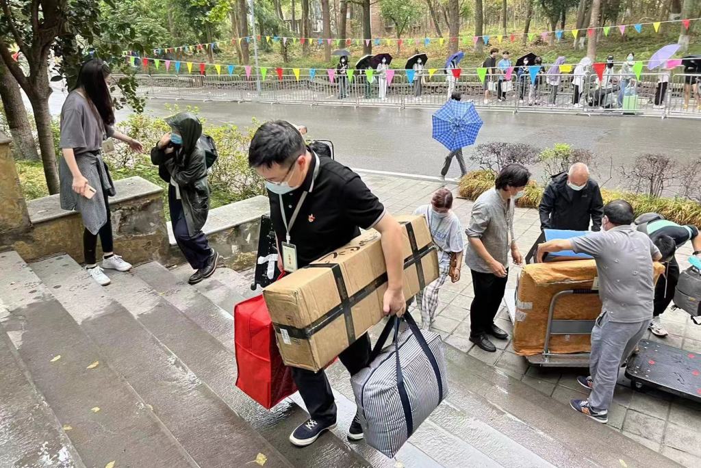 建筑与环境艺术学院志愿者进驻学生寝室4号楼工作区域,协助新生搬运行李、办理入住、安排送餐......为新同学们送上步入川美的第一缕温暖。