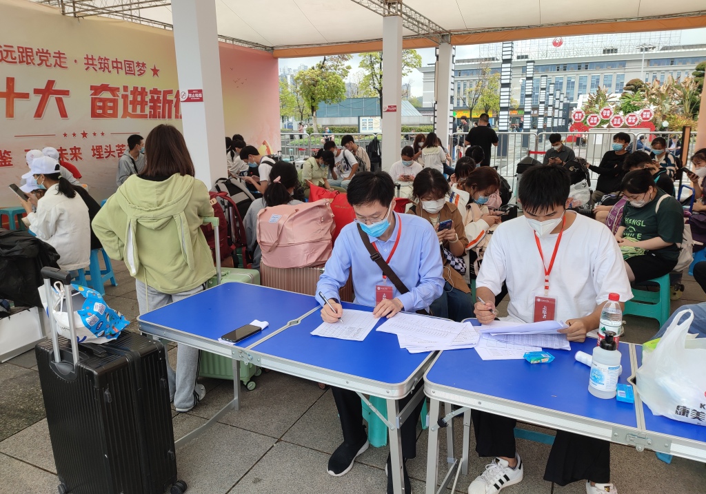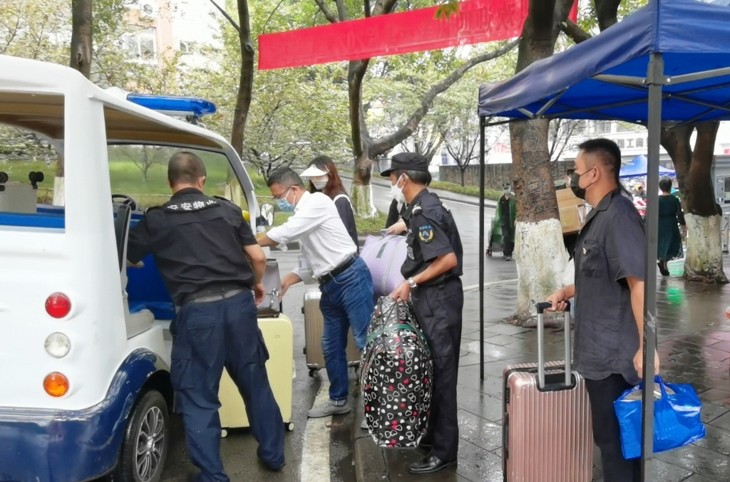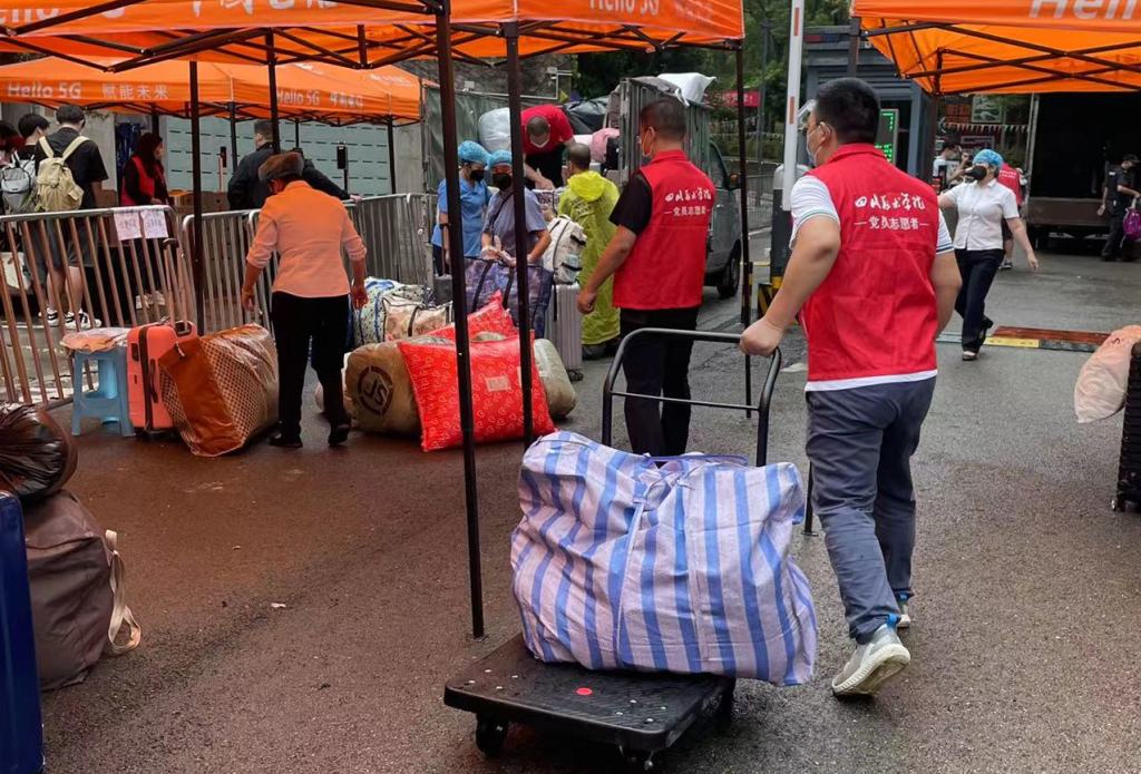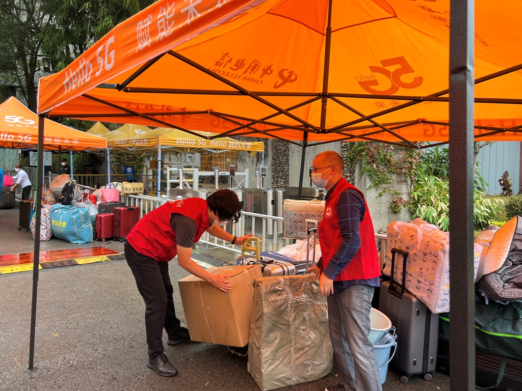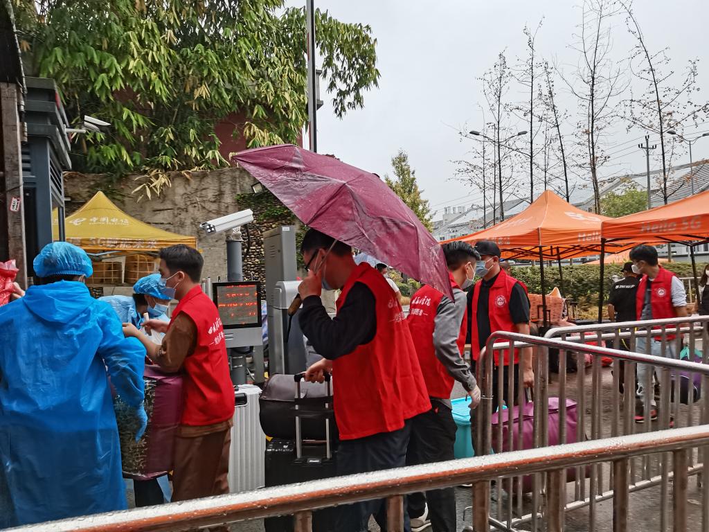 机关党委在大学城校区的西门、南门、各核酸检测点和重庆火车北站、西站,都安排了全天侯的党员教职工志愿者。各点位志愿者老师们都提前到岗,为新同学们做好抵渝接站、引导新生进校报到、协助搬运行李、引导核酸检测等志愿服务工作。