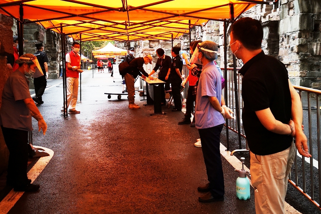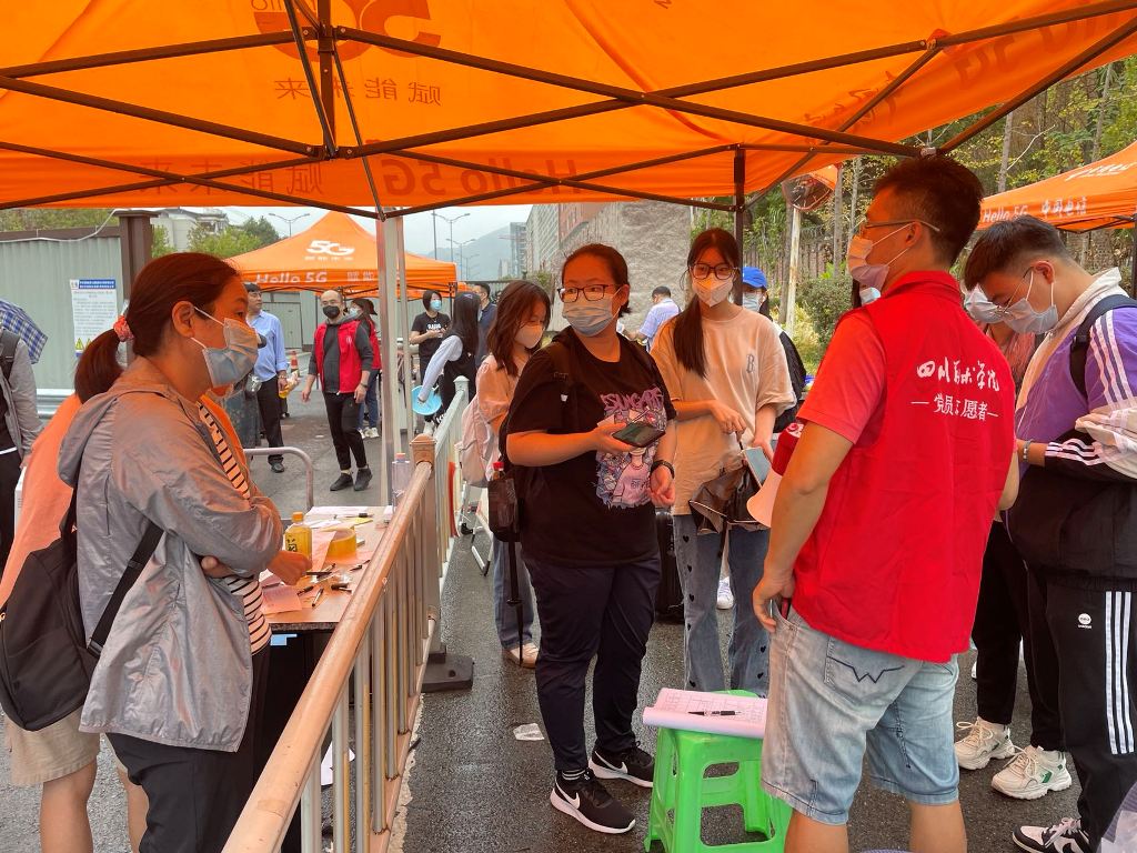9月1日,新生报到日。这是一次特殊的开学。因疫情防控的需要,家长们只能把孩子送到校门口。校门口,家长们帮着孩子们拿下大包小包的行李。校门口的志愿者老师,接过行李,帮着转运到各宿舍楼下。同学们按照要求,排队检验行程码、健康码、排队做核酸检测,等待接驳车将他们送达宿舍楼。