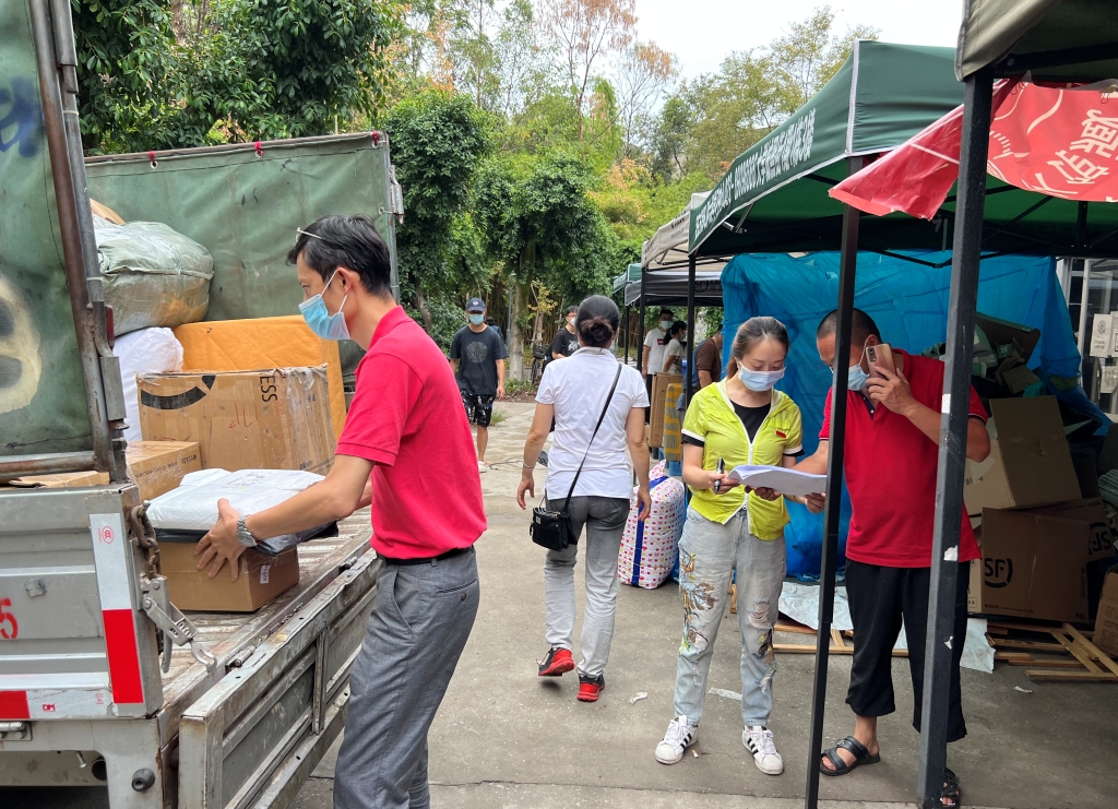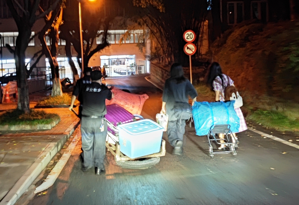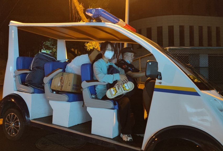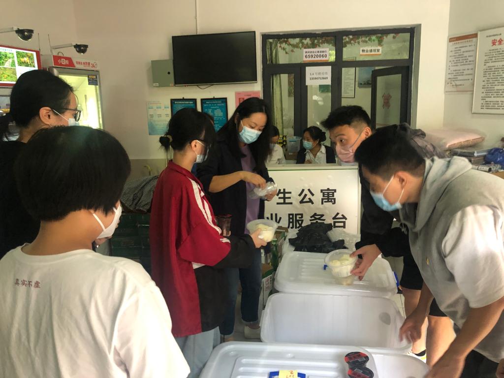 很多新同学刚开始以为这些帮忙拿行李、取快递、送盒饭、代购生活用品的贴心志愿者们是学长学姐,没想到都是自己的大学老师,同学们惊讶之余非常感动。一位女生一定要把随身携带的一包食物塞给志愿者老师补充体力,表达感激之情。