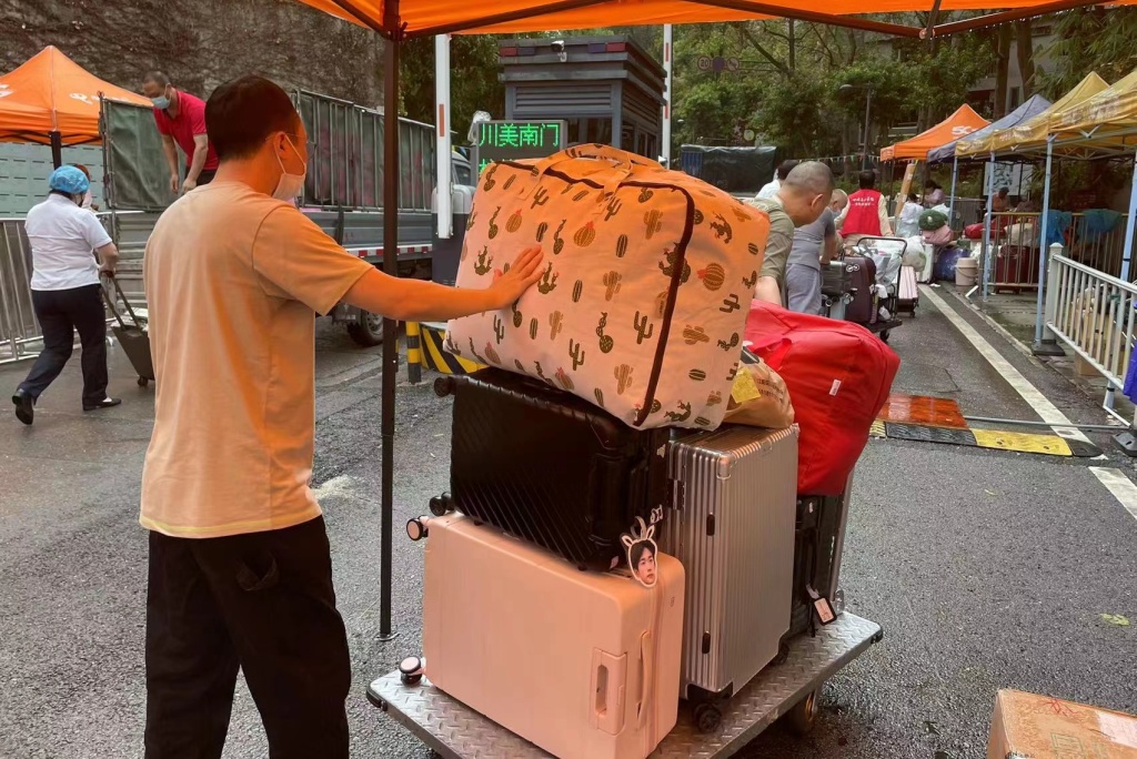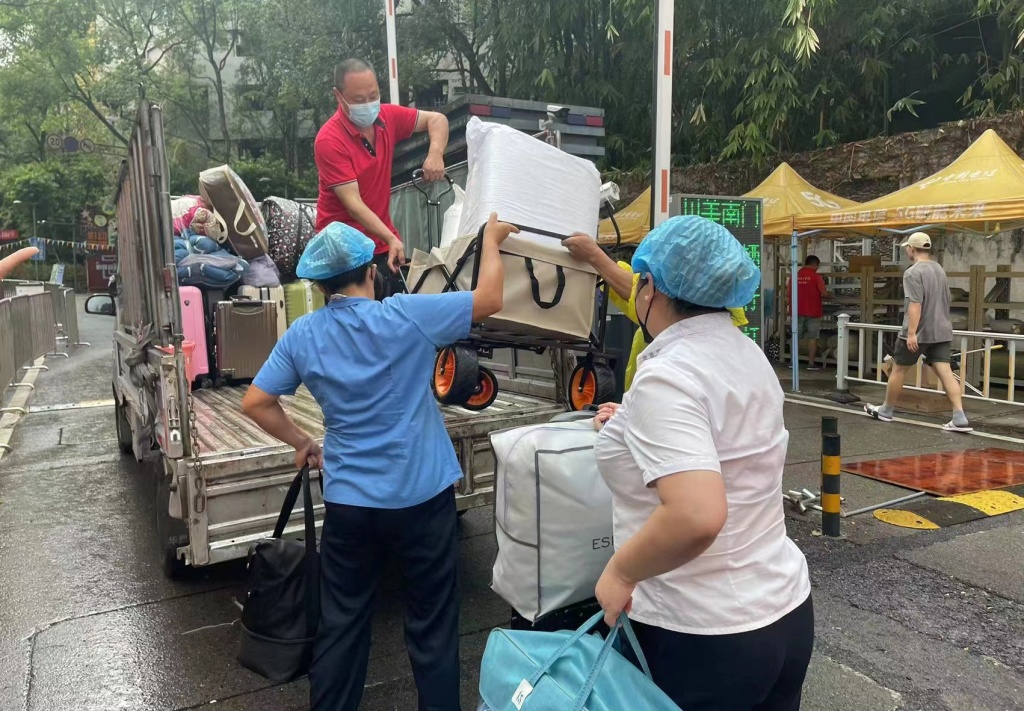 一位来自永川的版画专业新生向我们倾诉:今天来学校其实一路都很艰辛,从永川坐客车到重庆,可能因为疫情吧,出租车网约车都不愿意跑这边,辗转了好几次车才到这里,又淋着雨,太难了。但是来到学校后,老师们太让我感动了,行李也不用自己搬,真的感受到了学校的温暖,川美真的很不错!