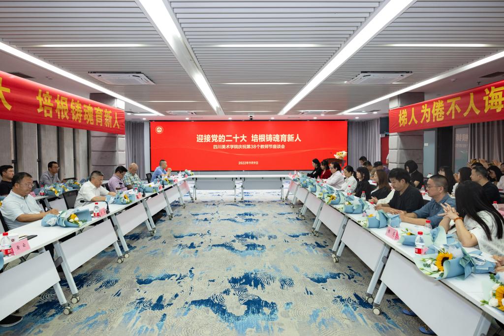 座谈会氛围热烈。教职工代表相继发言。建筑与环境艺术学院教师赵一舟讲到,成为川美人的这三年时间里,感触到了学校基于学脉传承的学术氛围,基于交叉融贯的创新意识,基于社会主题的川美力量。艺术教育学院教师赵炜用“感恩”“责任”“期待”三个关键词,总结了一名青年教师的感悟。建筑与环境艺术学院教师郭辉就守住“政治初心”、守住“道德高线”、守住“仁爱情怀”、守住“破立底气”,分享自己努力当好“大先生”的心得体会。公共艺术学院党总支书记雍朝永代表优秀集体发言,表示将继续坚持稳中求进,充分发挥党建引领保障作用,落实“立德树人”根本任务,营造风清气正的育人环境。招生处处长张弛认为,作为教师要有敢闯敢试的激情,无惧诱惑的笃定。设计学院教师向海涛与大家分享了从教30年的感想,以及在川美工作生活的丰盈多彩。