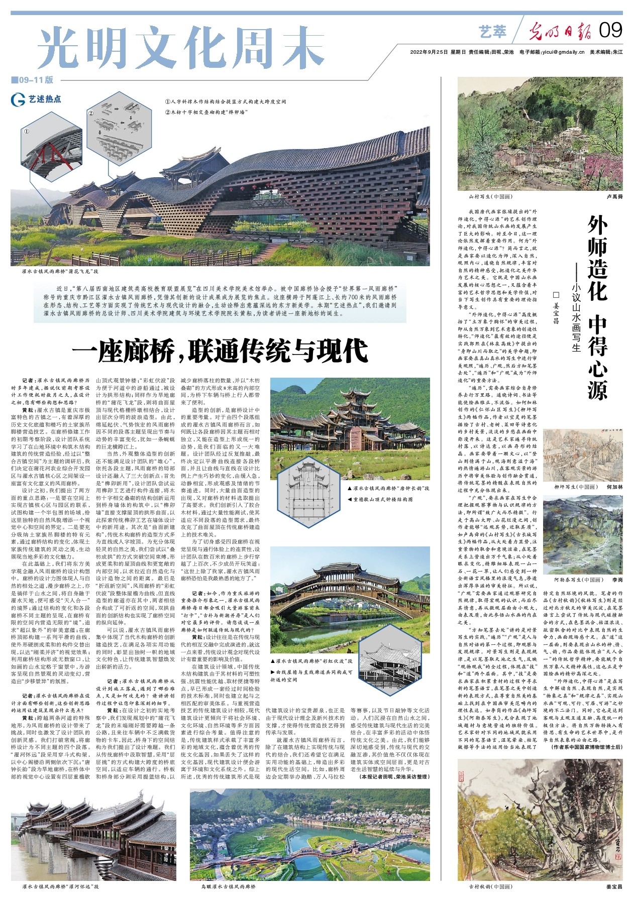 9月25日,《光明日报》第9版“艺萃”专栏,以《一座廊桥,联通传统与现代》为题,对我校乡村振兴设计项目“濯水古镇风雨廊桥”,进行了大半版面的深度专访报道。