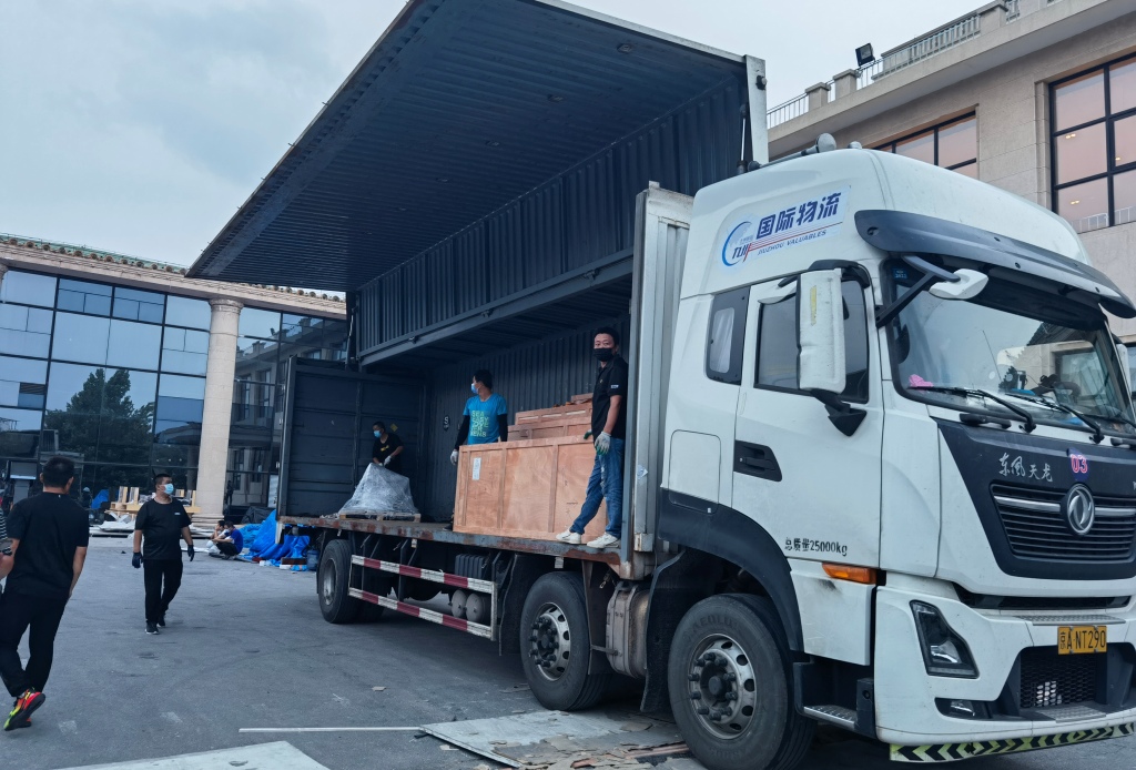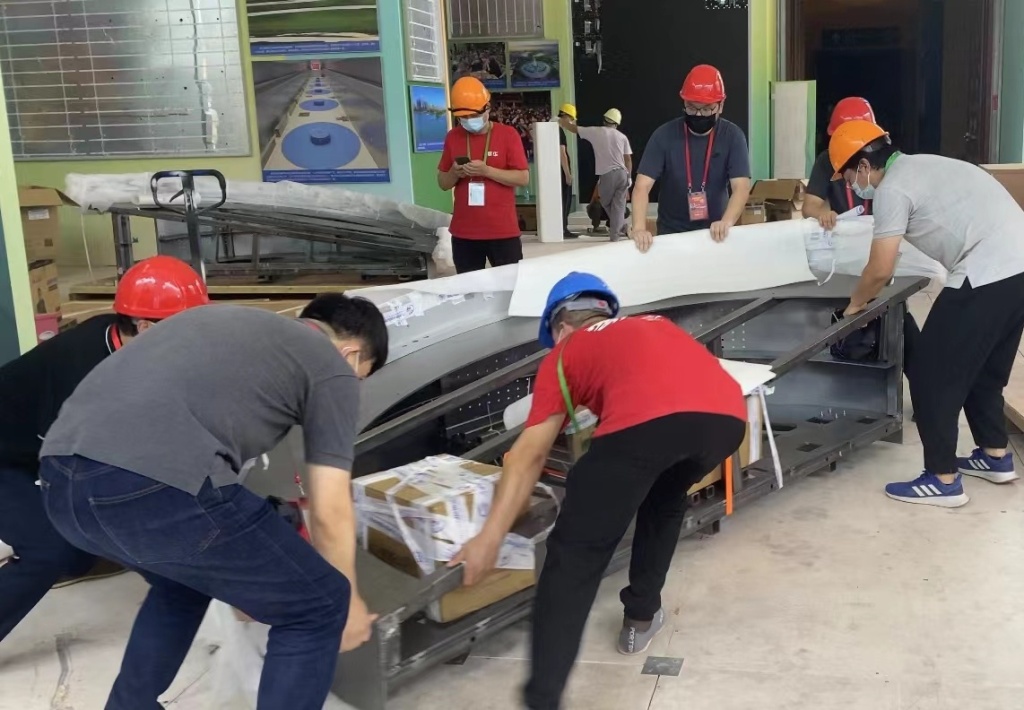 8月17日下午5点,所有实物构件顺利抵达北京展馆。经过消杀工作后,陆续搬运至展区。由于疫情原因,原计划赴京参与制作的施工人员不能到京,给布展工作增加了难度,经过重庆市委宣传部、三峡博物馆、四川美术学院等多方配合协调,最终保证了所有展项于9月5日安装调试到位。
