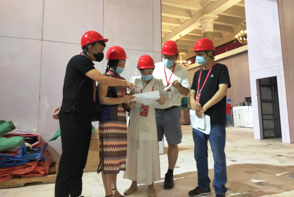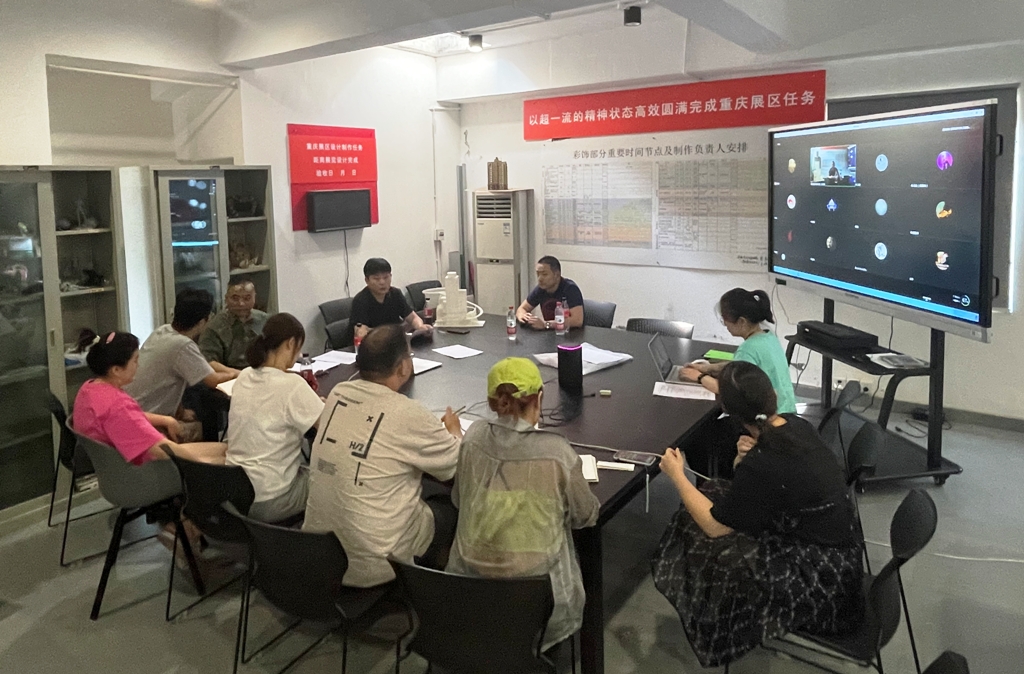 7月8日起,设计团队教师吴菡晗、王玺陆续赴京,与重庆市展览办相关人员组成驻京工作组,开始进行展区安装相关的前期工作。配合重庆设计团队完成每日工作日报及周例会,根据跟踪的北京展厅实际情况,与重庆团队及时沟通完善实物制作。