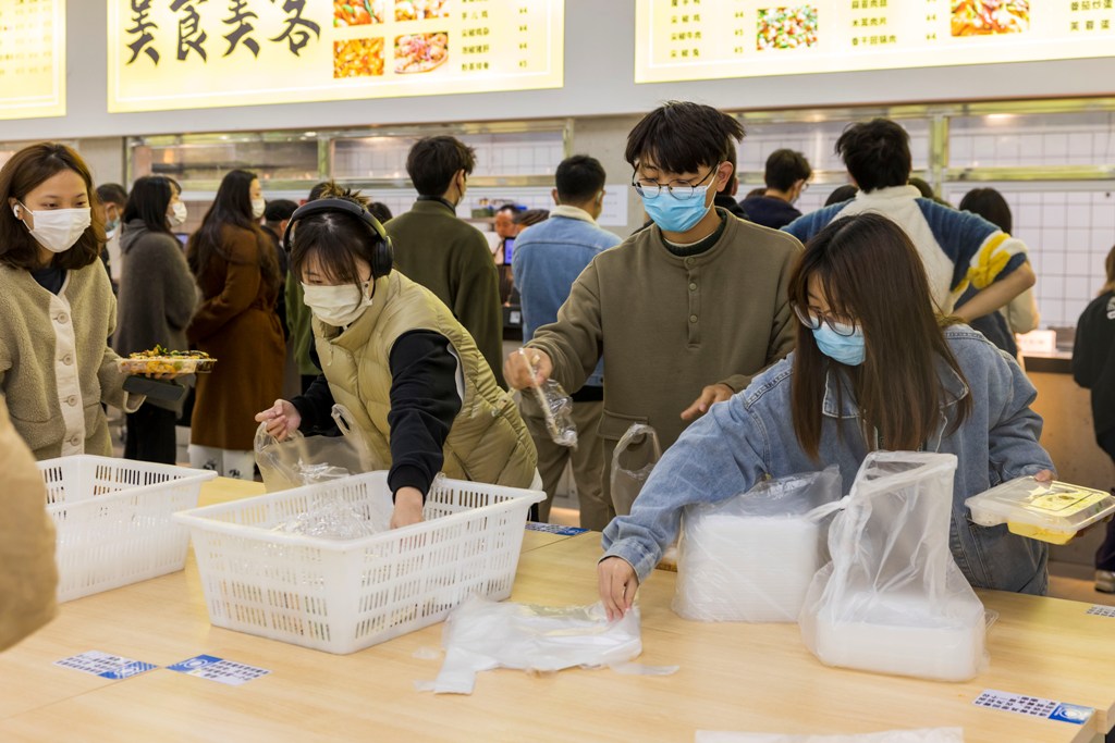 此外,在积极响应上级关于“取消堂食”倡导的情况下,学校相关部门与学生食堂商家协商,在校园疫情管理期间为同学们免费提供打包餐盒,方便学生快速打包带走餐食,避免聚集。
