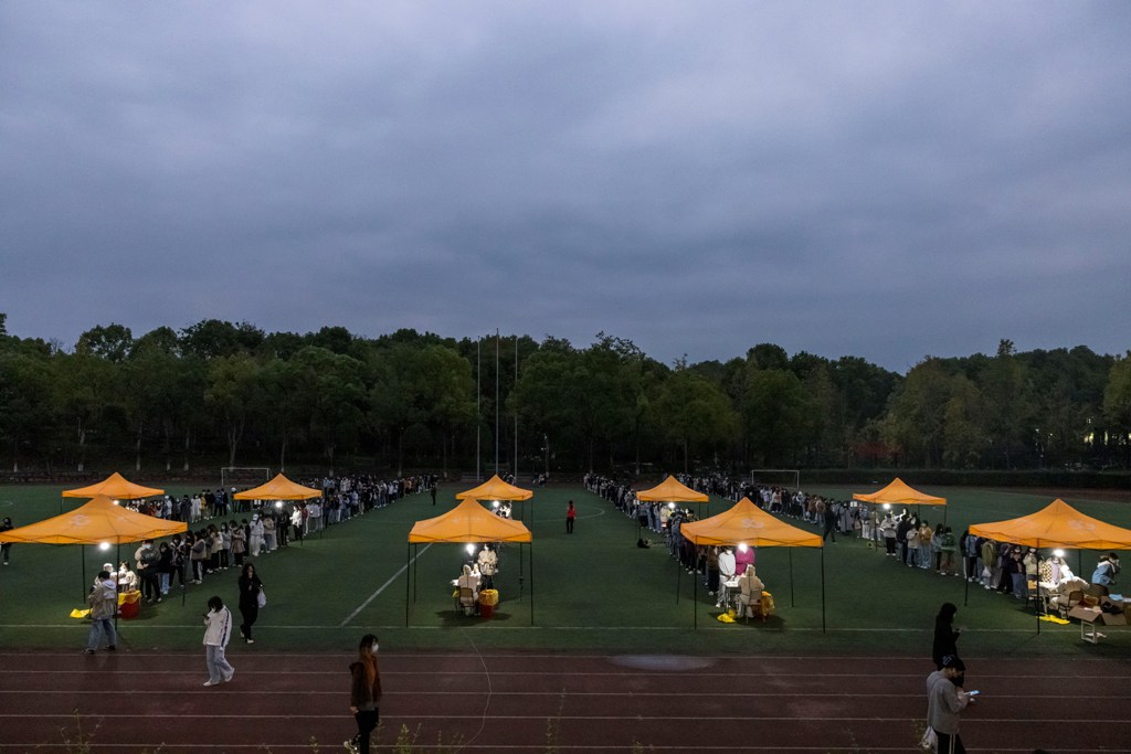 (同学们有序排队参加核酸检测)
