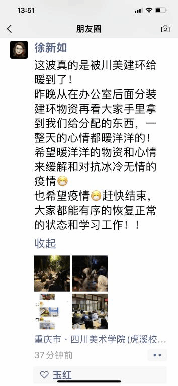 风雨过后总会有彩虹。相信在学校党委的有力领导下,在全校上下和广大师生的共同努力下,川美一定能打赢这场疫情防控阻击战!