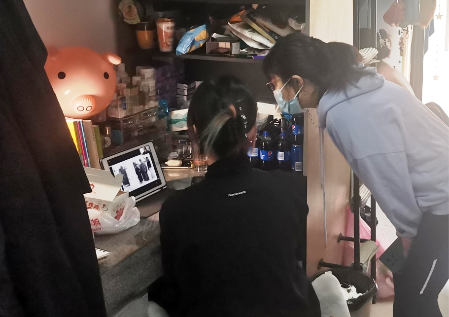 (同学们在寝室认真上网课)
