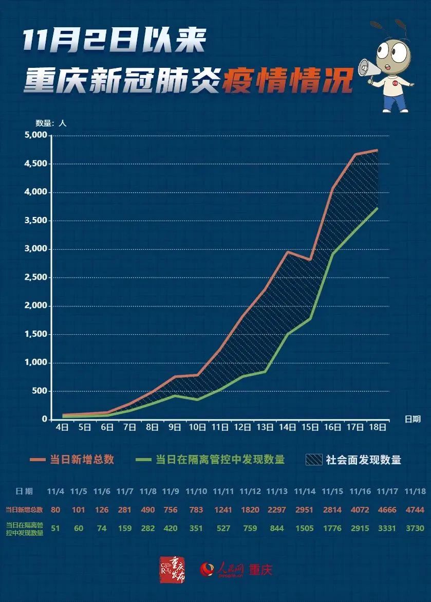 万州区、合川区、梁平区、巫溪县等区县11月18日单日新增感染者数超过50例,疫情处于发展期;垫江县、秀山县单日新增感染者数超过100例,疫情处于快速上升阶段。