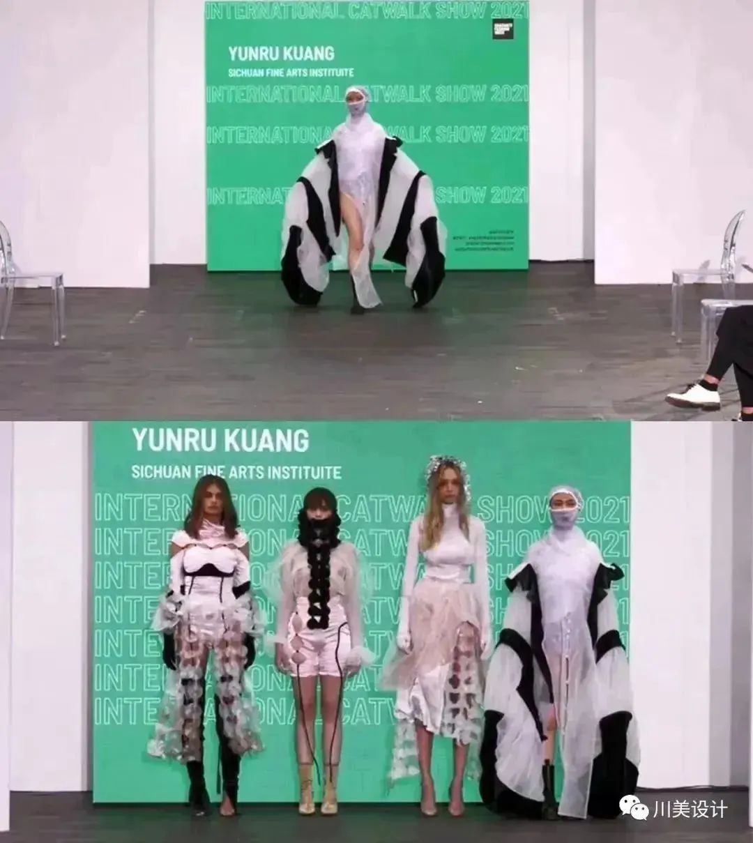 今年,服装系10名学生的毕业作品参选2022伦敦国际大学生时装周,敬文萱和蔡红丽作品入选优秀作品集并在官网发布,敬文萱和费琛钰作品入选时装周国际秀,代表四川美术学院参加10月16号在印度孟买举办的2022国际大学生时装周国际秀发布。