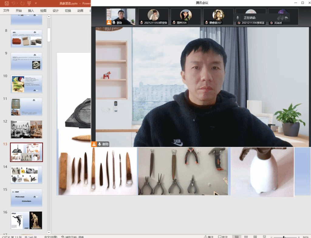 《具象塑造》这堂课,是谢勋老师在集中隔离点为同学们上的。谢老师是这次疫情的密接人员,正在被集中隔离。一边配合好隔离工作,一边继续坚持教学任务。谢勋老师为不耽误上课,前去隔离时就早早准备了网络教学的电脑等物资。通过直播讲授、上传课程资料、布置学习任务等形式引导学生学习,师生通过视频、语音和弹幕等方式开展课堂互动,确保线上教学质量。他用自己正在隔离的经历,给同学们做好思想引导工作,让同在隔离的同学,静心隔离,安心学习。
