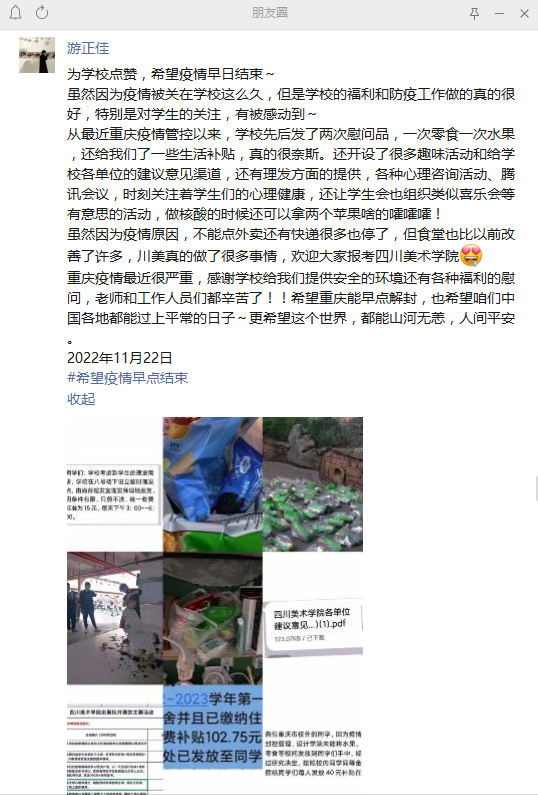 下图为设计学院一位学生在微信朋友圈发布的感言: