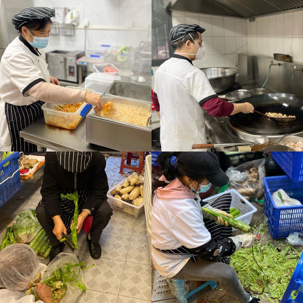 有食堂的员工,他们坚守岗位,确保每日食材的新鲜,力求每顿配餐的营养。按时准点,保证让学生、老师、志愿者们等校内与疫情战斗的同志们都能吃上热乎的饭菜,他们的工作是打赢这场战斗的基本保障。