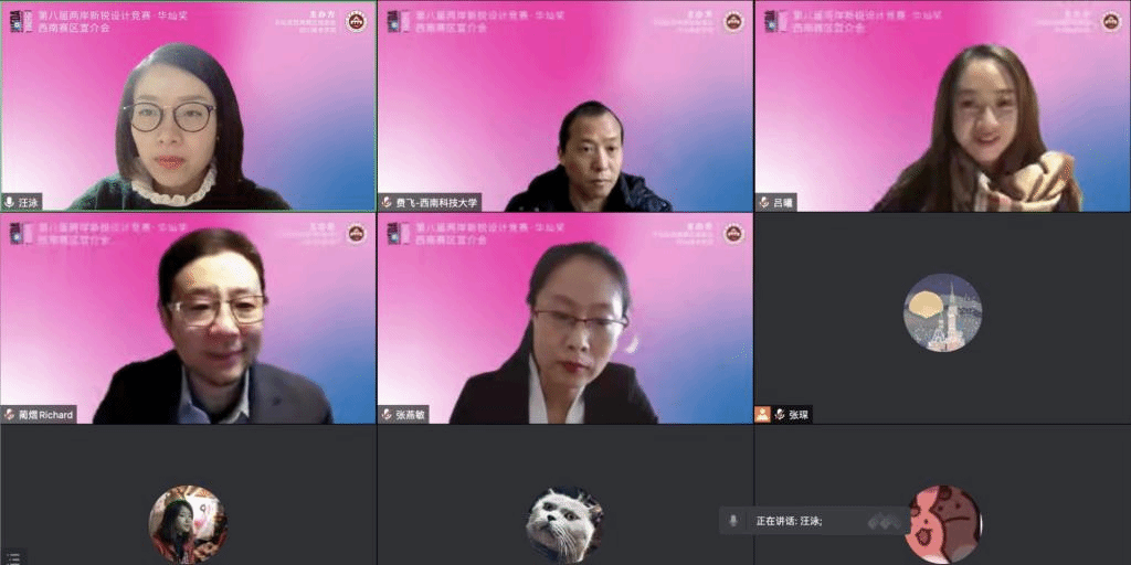 第八届两岸新锐设计竞赛-华灿奖设置了东北、华北、华东、华中、华南、西南、西北、香港、澳门、台湾十大赛区,采用校赛、赛区赛、全国赛三级赛制。其中,西南赛区由四川美术学院牵头组织。2022年12月16日上午,西南赛区宣介会在四川美术学院顺利召开。宣介会采取线上形式,汇聚了华灿奖定向主题单位分享嘉宾以及来自四川大学艺术学院、四川音乐学院成都美术学院、重庆大学艺术学院、重庆师范大学美术学院、云南艺术学院、云南师范大学美术学院、贵州大学美术学院、贵州民族大学美术学院等四川、重庆、云南、贵州、西藏五地高校的专家代表、校赛组织教师、部分设计专业学生。