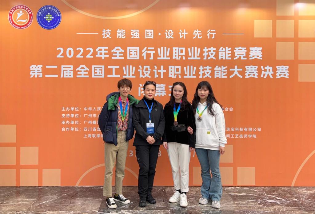 在第二届全国工业设计职业技能大赛中,我校工艺美术专业手工艺术系系主任张压西作为教练和领队,教师陈静、翁欣羽作为职工组代表,2019级本科生熊潇潇作为学生组代表参赛,并取得优异的成绩。