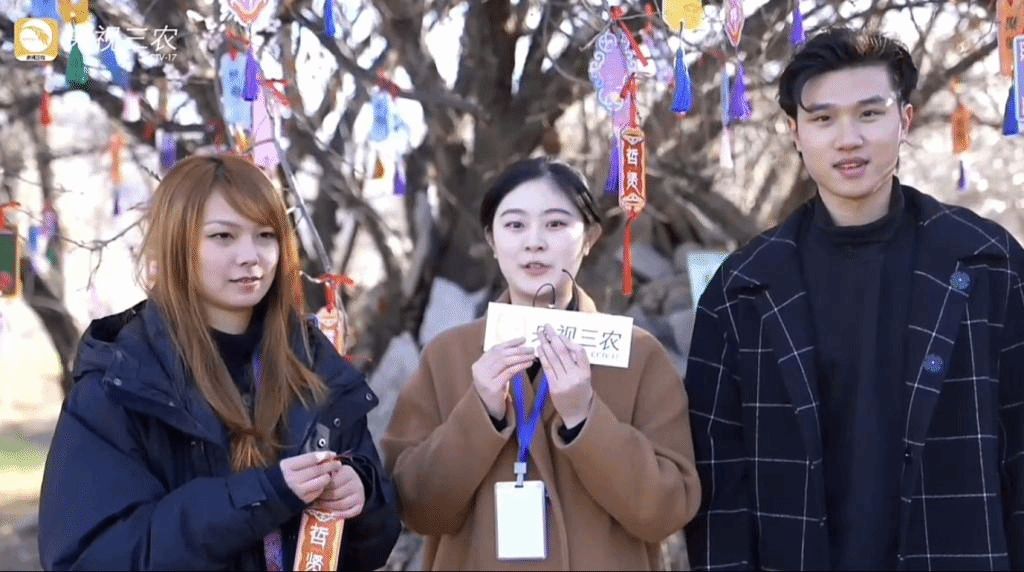 3月25日,“桃花十里,得荣等你”活动在“央视三农”全媒体矩阵(央视频、微博、视频号、抖音、快手)开启直播,设计学院设计并制作的许愿卡在直播中亮相。该许愿卡每套10枚,结合当地民俗文化以及桃花等特色元素,具有较强的艺术性,起到了较好的宣传效果。设计学院王玺、何嘉仪、张雪儿、刘宇飞、张路阳、鲁娟等师生现场参与直播,并与央视主持人、导演和直播嘉宾丁真等进行互动。直播全网观看量达100多万,有效宣传了德荣县乡村形象,促进了本地农产品销售。