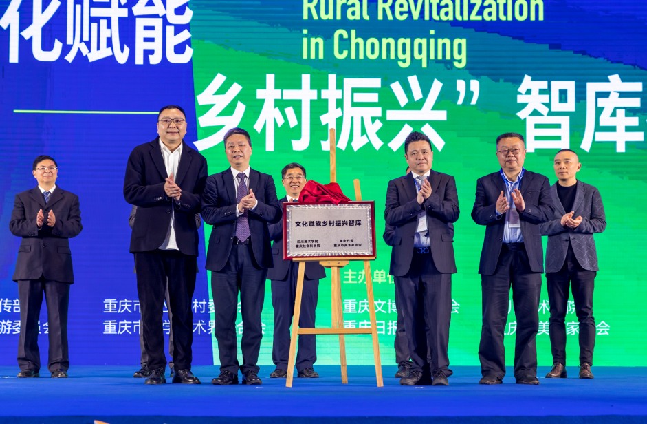 开幕式上举行了“文化赋能乡村振兴”智库成立及揭牌仪式。党的十九大以来,中央多次要求“加强中国特色新型智库建设”,新型智库可以发挥联系广泛、智力密集、机制灵活的优势。为此,四川美术学院、重庆日报、重庆社会科学院、重庆美术家协会联合发起成立“文化赋能乡村振兴”新型智库,以促进乡村文化理论研究与社会实践的融合,为乡村文化发展集聚国际国内专业资源,助力乡村文化繁荣和乡村文化产业的发展。