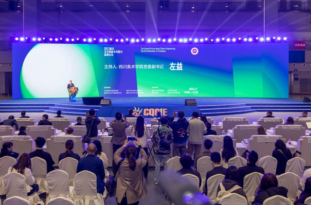 4月7日,第十一届重庆国际文化产业博览会在重庆国际会议展览中心开幕。其中,由重庆文博会组委会、重庆日报、四川美术学院、重庆市美术家协会共同主办的“2023重庆文化赋能乡村振兴高峰论坛”,作为本届重庆文博会主论坛,于当日上午10点开幕。论坛围绕乡村振兴的五大振兴任务,探讨文化赋能乡村振兴的理论研究与实践成果。来自全国的6位专家学者、优秀企业代表、资深从业者分享了他们的理论成果、实践经验,为乡村振兴赋能。论坛开幕式由四川美术学院党委副书记左益主持。