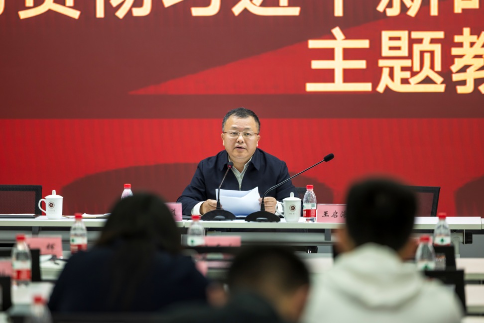 2023年4月13日下午,学校召开学习贯彻习近平新时代中国特色社会主义思想主题教育动员大会后,立即召开了主题教育工作培训会,学校党委副书记左益做工作培训,各二级党组织书记、各基层党支部书记共60余人参加了培训。