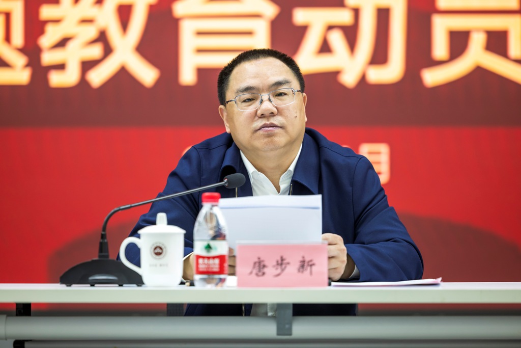 唐步新传达了重庆市委召开的主题教育动员会的主要精神,介绍了巡回指导组的工作内容和工作职责。并对学校开展主题教育,推动工作落实提出五点要求:一是要提高政治站位推动落实,深刻认识开展主题教育的重大政治意义、理论意义和实践意义。二是要把握目标要求推动落实,全面把握、准确理解主题教育总要求,与落实校第三次党代会目标任务紧密结合,切实履行为党育人、为国育才的职责使命。三是要围绕根本任务推动落实,推动广大党员干部师生真学真懂真信真用,自觉做习近平新时代中国特色社会主义思想的坚定信仰者和忠实实践者。四是紧盯具体目标推动落实,坚持目标引领和问题导向相结合,以具体目标为牵引,以解决问题为抓手,推动各项任务落实落地。五是要贯通重点措施推动落实,把理论学习、调查研究、推动发展、检视整改、建章立制贯通起来,突出重点、抓住关键,统筹兼顾、整体推进,努力把每项工作做扎实、做到位。