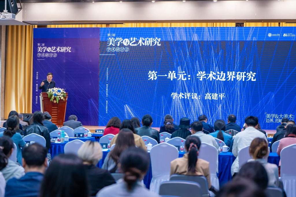 研讨会第一单元议题为“学术边界研究”,该单元着重讨论美学、大美术的领域界定和边线交融,由高等教育出版社编审、博导蒋文博主持,高建平担任学术评议。