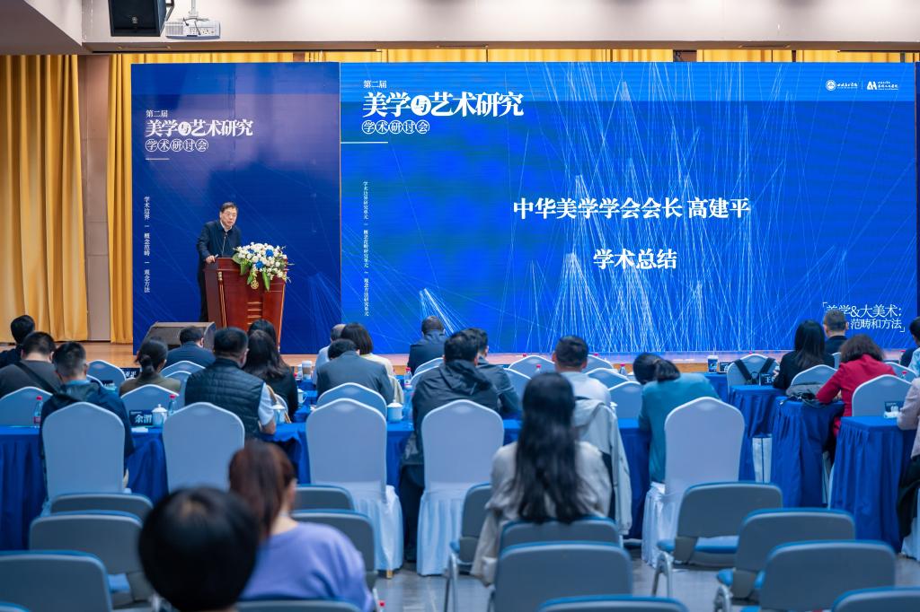高建平为此次研讨会做学术总结,他围绕本次研讨会主题的三个词语:边界、范畴和方法来总结各位专家的发言,他指出,各位专家学者分别从这三个词语中找到了自己的阐发角度,视野广阔、观点明确;本次研讨会是意识与思想、理论与实践的结合,为促进学术交流,启发学术创新提供了重要平台;对四川美术学院对本次研讨会的组织与支持表示感谢,希望此次研讨会所带来的学术活力能在其后的美学与艺术论坛中保持下去。