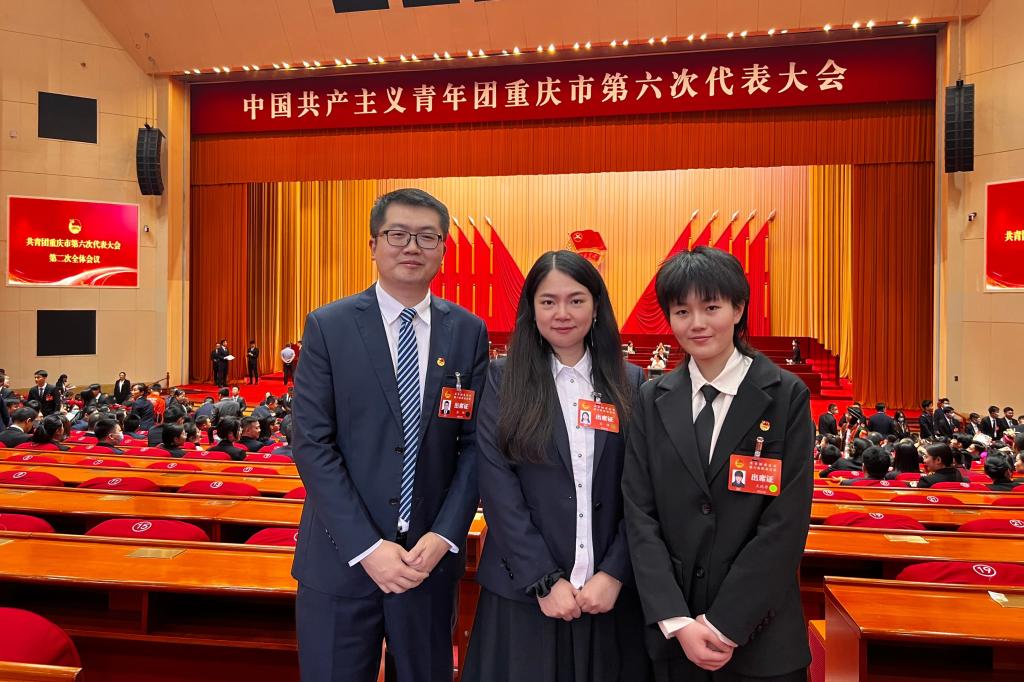 我校团干部代表吴倩、张坤,团员代表王纯希共3名代表参加了大会。此次大会在参会代表中引起了热烈反响,大家结合自身实际,纷纷表示要勇担时代使命,在新时代新征程为全面建设社会主义现代化新重庆贡献青春智慧和力量!