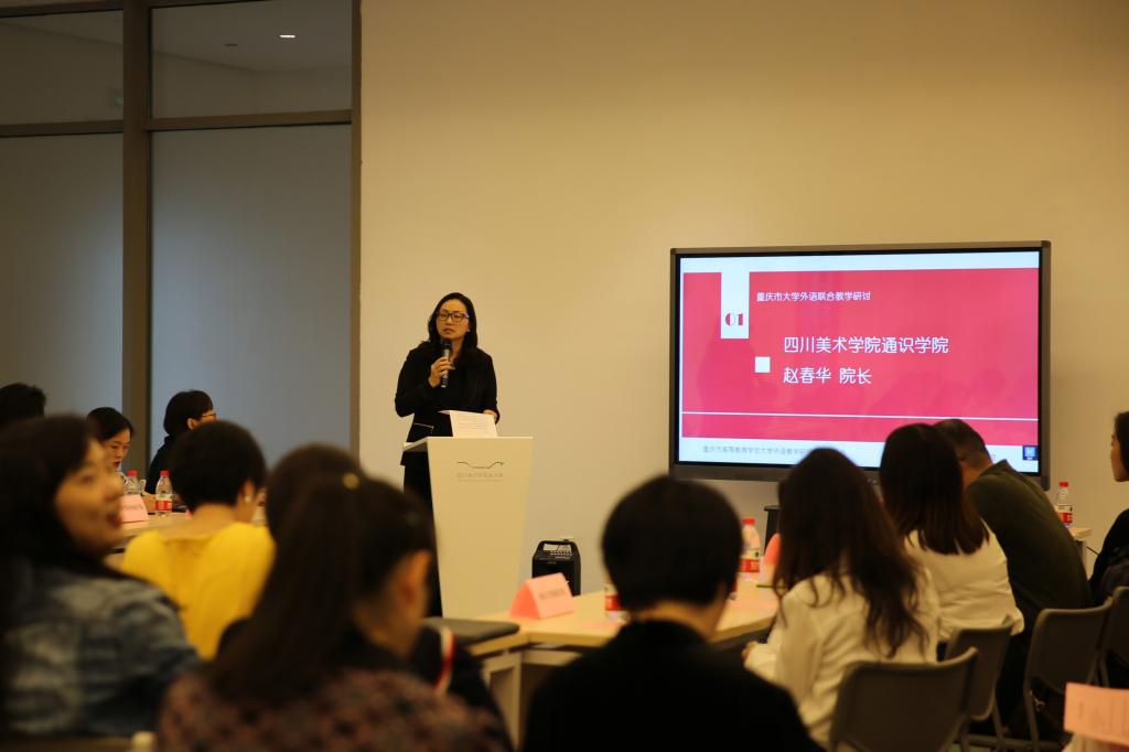 在此次联合教学研讨会上,四川美术学院通识学院肖红书记向市内同行阐述了川美方案,分享了通识学院近六年的课程改革成果,并以英语教研室为例,详细地展示了各改革阶段课程理念的不断调整与发展;同时强调川美外语教学应注重通专融合,在课程实施中探寻新的外语教育格局。