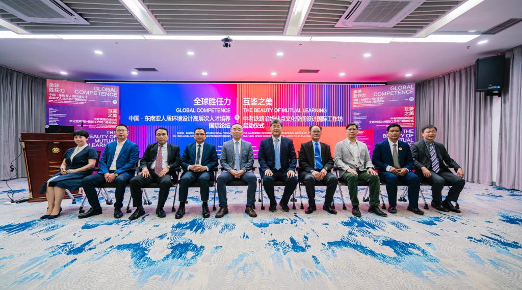 6月17日,全球胜任力——中国-东南亚人居环境设计高层次人才培养国际论坛在四川美术学院召开,同期,互鉴之美——中老铁路沿线站点文化空间设计国际工作坊正式启动。老挝驻华大使馆教育文化参赞、老挝国立美术学院校长、柬埔寨皇家艺术大学副校长、泰国艺术大学研究与国际事务副院长、老挝国有铁路有限公司董事长、老挝国家工商会中国代表及来自中国、老挝、柬埔寨、泰国等艺术院校师生代表参加本次活动。