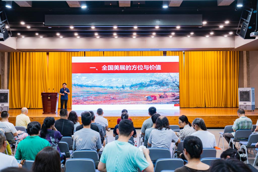 大会最后,创作科研处邀请国家社科重大招标课题首席专家、国家高层次人才计划入选者、四川美术学院特聘教授黄宗贤,为全体师生作了备战全国美展专题讲座《视觉诗篇心灵印迹——全国美展的方位与走向》。讲座从全国美展的历史维度、特点和当下境遇阐释了全国美展的方位与价值,讨论了主题性美术创作的趋势,提示师生们在新的时代,中国美术要有大的作为,必须处理好主旋律与多样性的统一、现实性与人文性建构、思想性与艺术性互动、开放性与自主性共振的关系。
